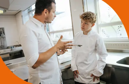 Praktijkervaring vormt een belangrijk onderdeel van het onderwijs op de Horeca Vakschool Rotterdam. In de eerste twee leerjaren oefenen leerlingen vooral binnen de schoolmuren, in de keuken of in de bakkerij. Daar leren zij werken met echte producten en ontdekken zij hoe deze het best kunnen worden gebruikt.